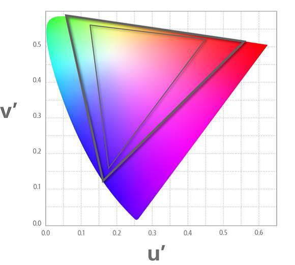 细线:全高清模式色彩范围(ITU-R BT.709 标准)